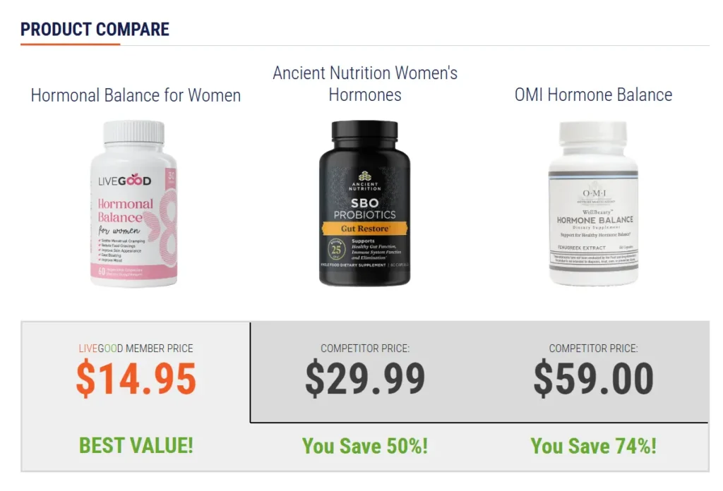 | LiveGood Hormonal Balance | $14.95 | OMI: $59.00 |