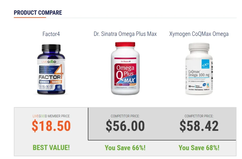 Factor 4 te ofrece más, por menos. Una combinación que otros venden separada, LiveGood la reúne con ingredientes clínicos, a precio accesible.