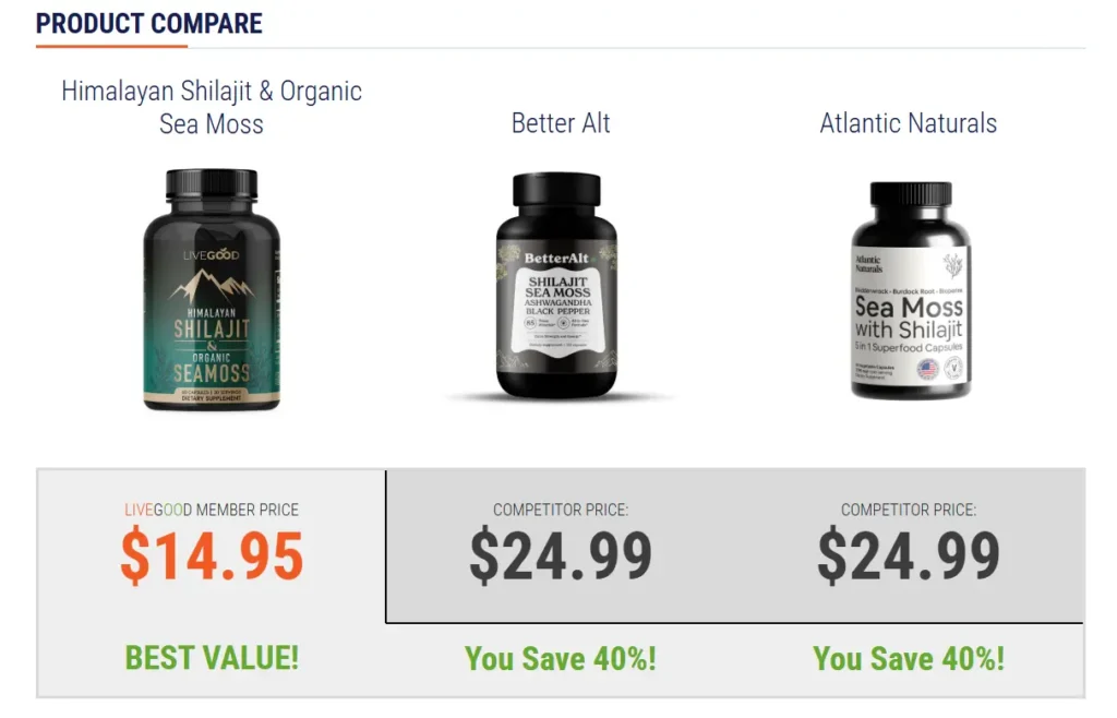 | LiveGood Shilajit + Sea Moss | $14.95 | $24.99 | 40% |